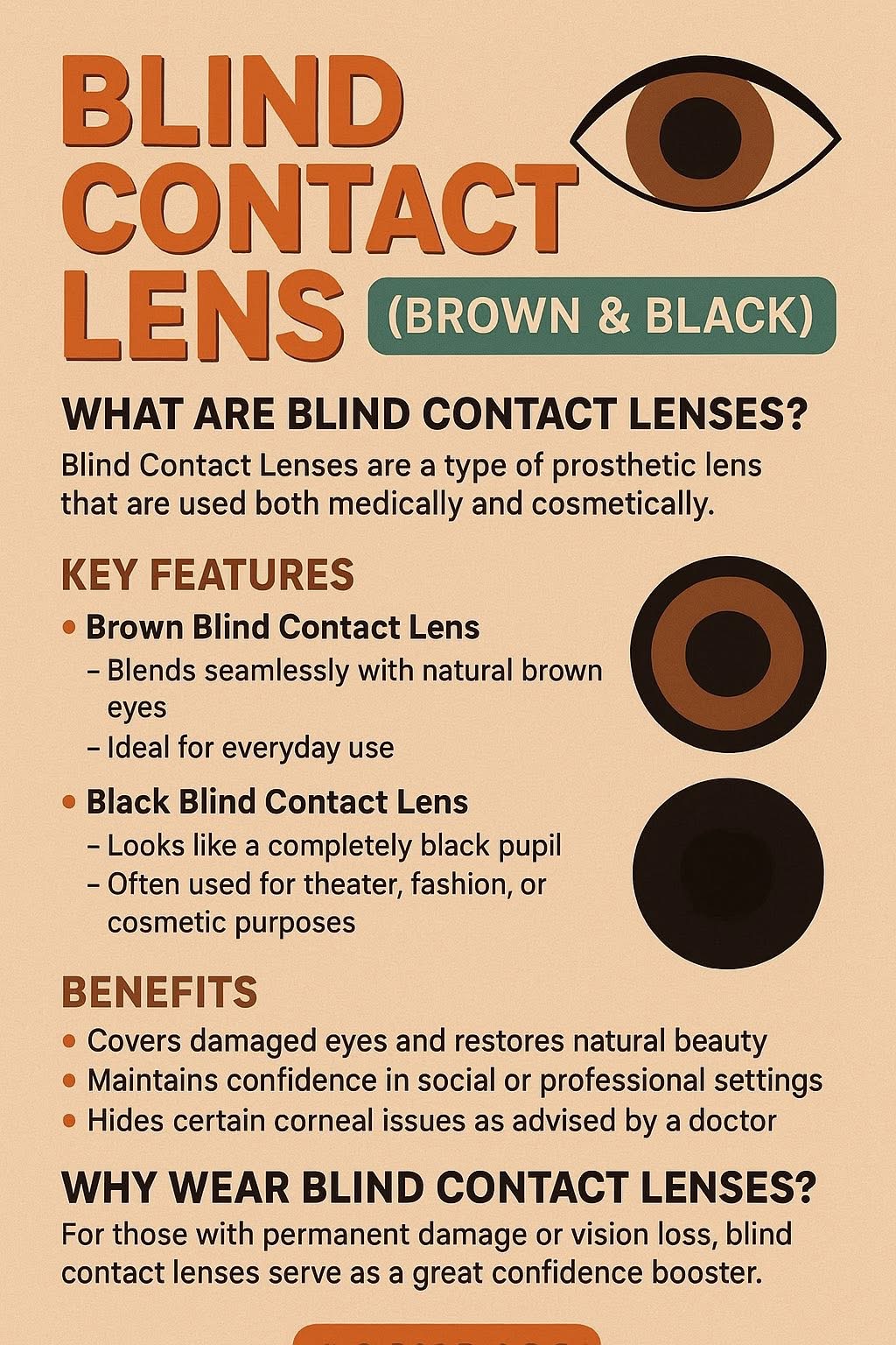 Blind Contact Lens মূলত Prosthetic Lens এর একটি ধরন, যা চিকিৎসা ও কসমেটিক—দুই দিক থেকেই ব্যবহৃত হয়। যারা দৃষ্টিশক্তি হারিয়েছেন বা এক চোখ ক্ষতিগ্রস্ত হয়েছে, তাদের চোখকে প্রাকৃতিক রঙ ও আকার ফিরিয়ে আনতে এই লেন্স ব্যবহার করা হয়। এটি শুধু সৌন্দর্য বাড়ায় না, বরং আত্মবিশ্বাসও পুনরুদ্ধার করে।
